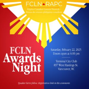 FCLN-RAPC celebrates esteemed Filipino-Canadian colleagues and members of the British Columbia bar at its inaugural awards night on February 22, 2025.